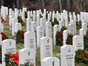 Wreaths will be removed from the headstones beginning at 10:30 am.